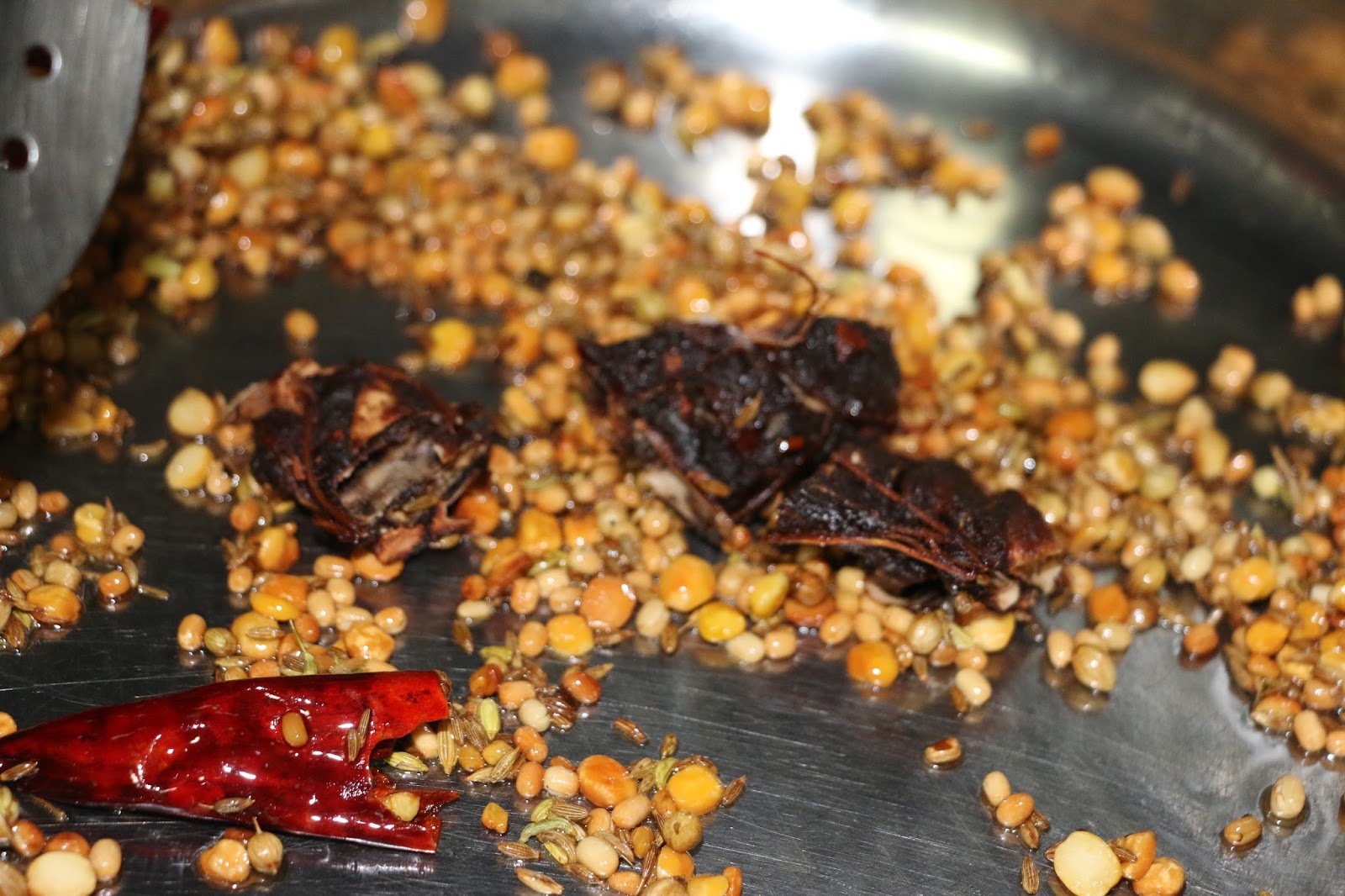 roasted partially, add chickpeas/Bengal gram and let it get roasted
